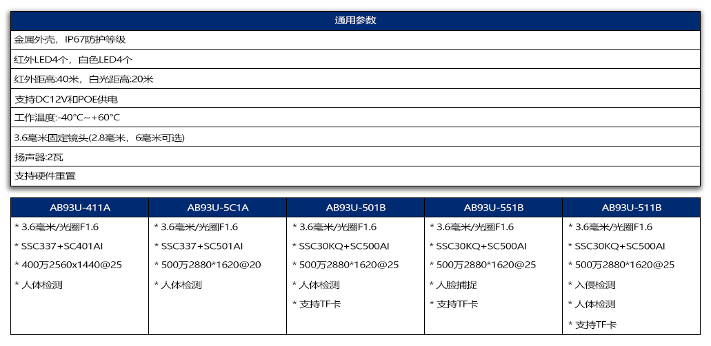 型号:AB93U 4MP/5MP枪机